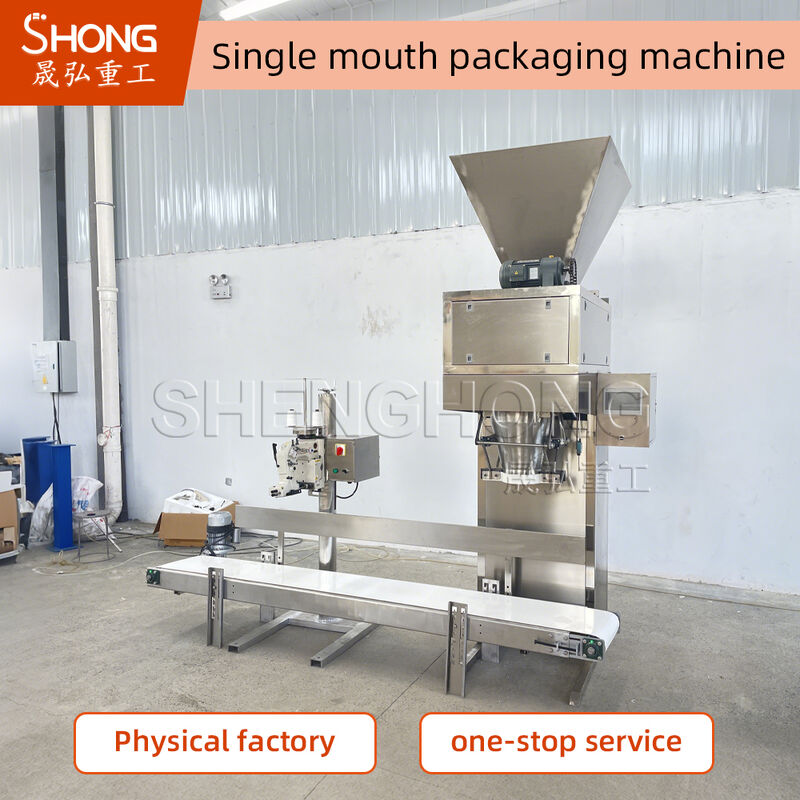 Μια μηχανή συσκευασίας περιλαμβάνει κυρίως ποσοτική ζυγαριά υπολογιστή, όργανο ελέγχου ζύγισης, μηχανισμό σύσφιξης σακούλας, μεταφορέα και μηχανή υποδοχής. Η χοάνη είναι από χάλυβα χαρτονιού με αντιδιαβρωτική βαφή. Η μηχανή συσκευασίας που έρχεται σε επαφή με το λίπασμα είναι από ανοξείδωτο χάλυβα.