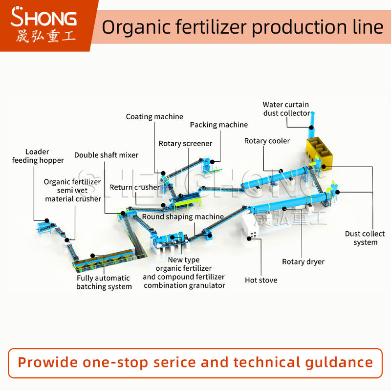 Αυτή η γραμμή παραγωγής οργανικών λιπασμάτων υψηλής χωρητικότητας μετατρέπει αποτελεσματικά ζωική κοπριά και γεωργικά απόβλητα σε πολύτιμα οργανικά λιπάσματα,αντιμετώπιση περιβαλλοντικών προβλημάτων, ενώ παράλληλα δημιουργείται οικονομική αξίαΤο ολοκληρωμένο σύστημα περιλαμβάνει διαδικασίες ζύμωσης, ξήρανσης, κοκκιοποίησης και συσκευασίας.